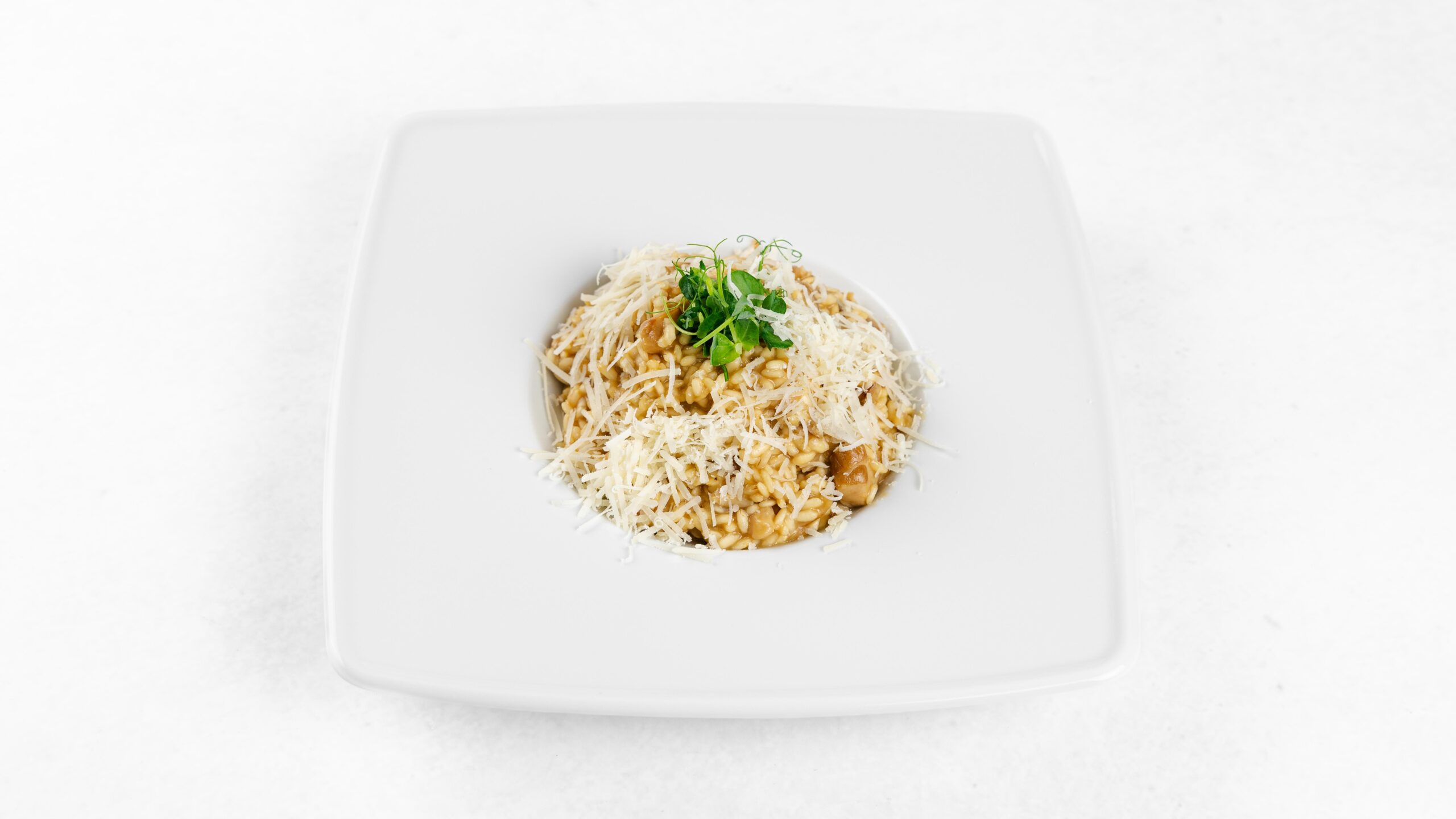 Arborio rice with porcini mushrooms, butter, parmeggiano reggiano, white wine, spices and stock.